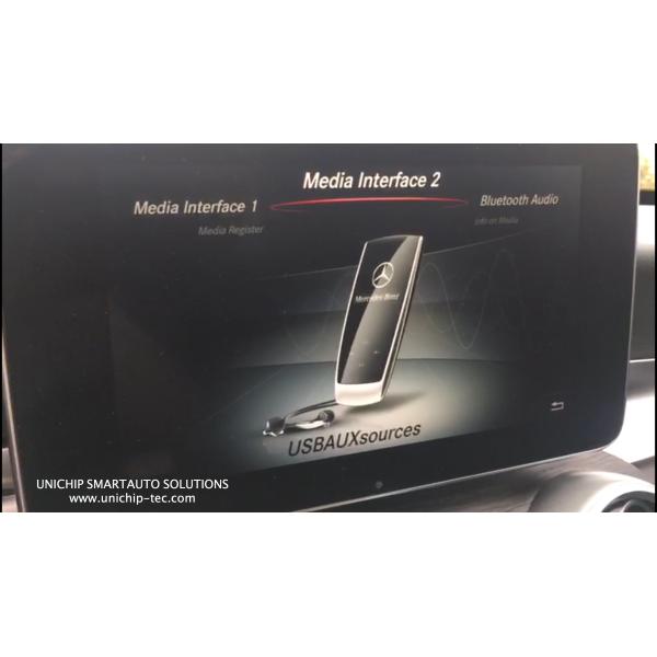 Unichip USB AUX in Dongle USB AUX Converter for Mercedes W205 X253, the video shows us how our USB AUX-IN dongle works with the original Mercedes NTG5.5 navigation system, choose the USBAUXSources from original factory Media system.
